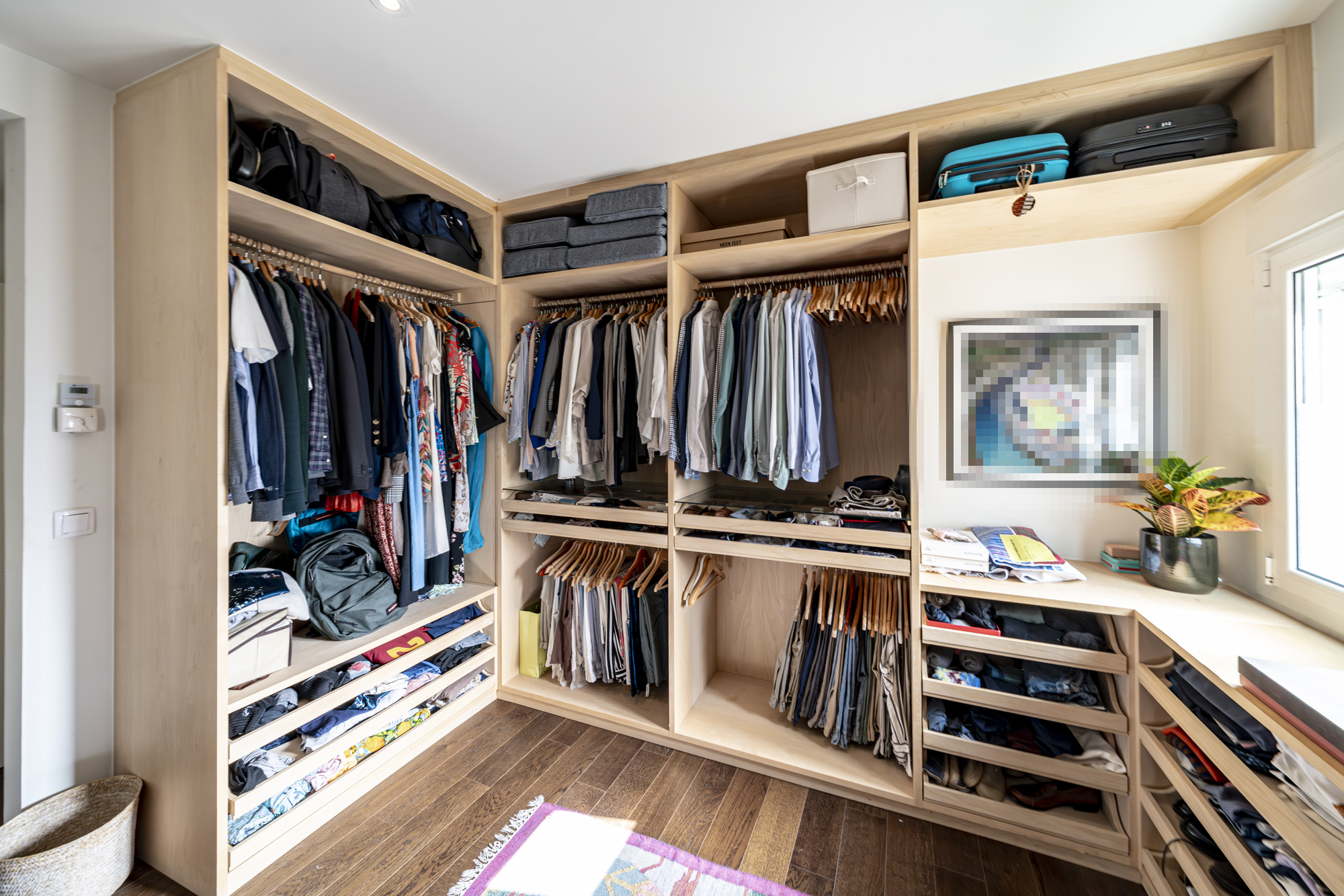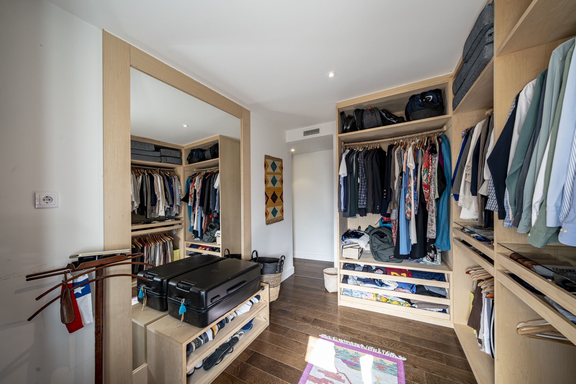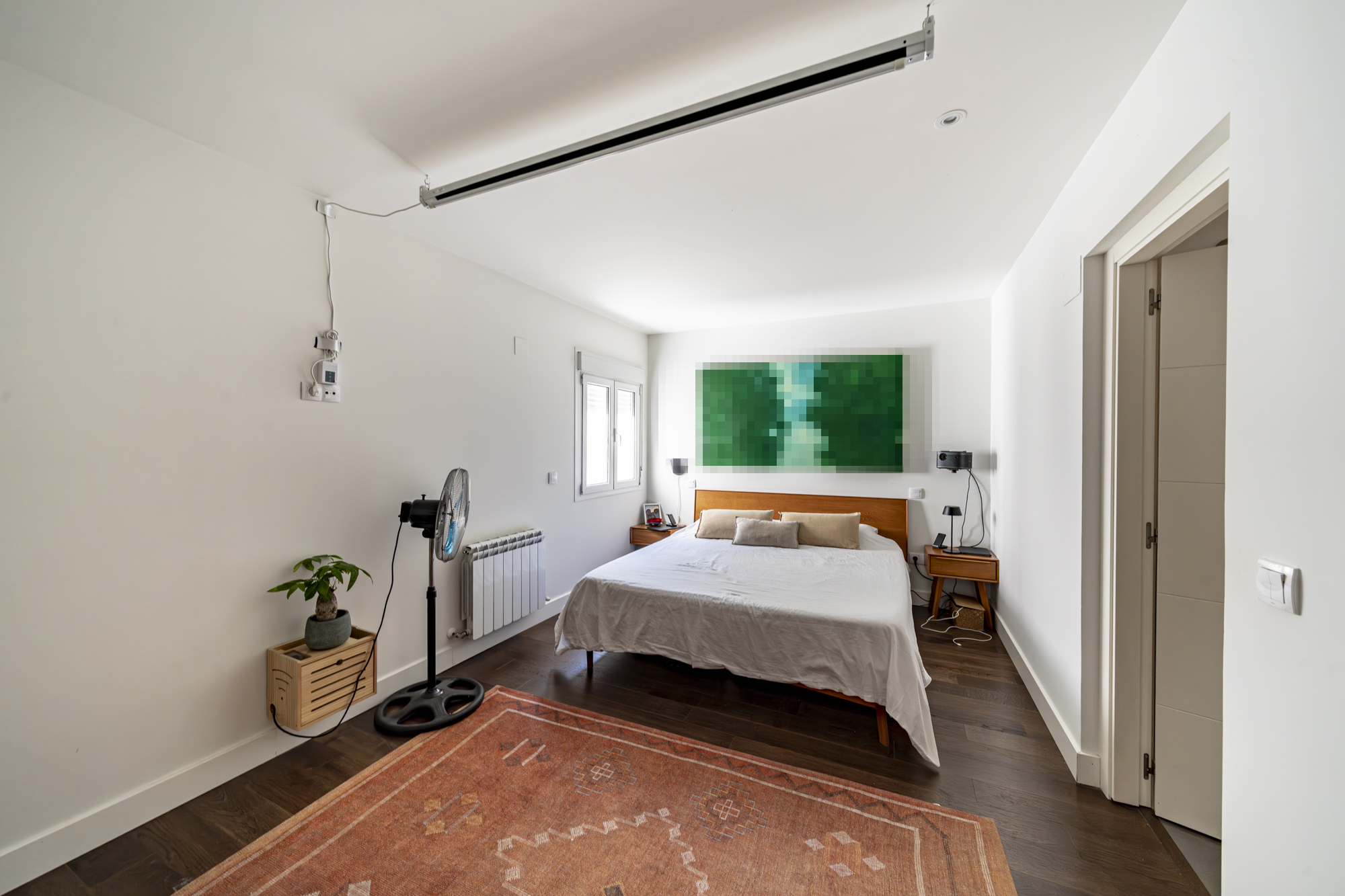 Zona de noche: aseo de invitados junto al salón, dormitorio con armarios y baño, dormitorio princiapl amplisimo con baño grande y enorme vestidor que es en realidad un tercer dormitorio.
