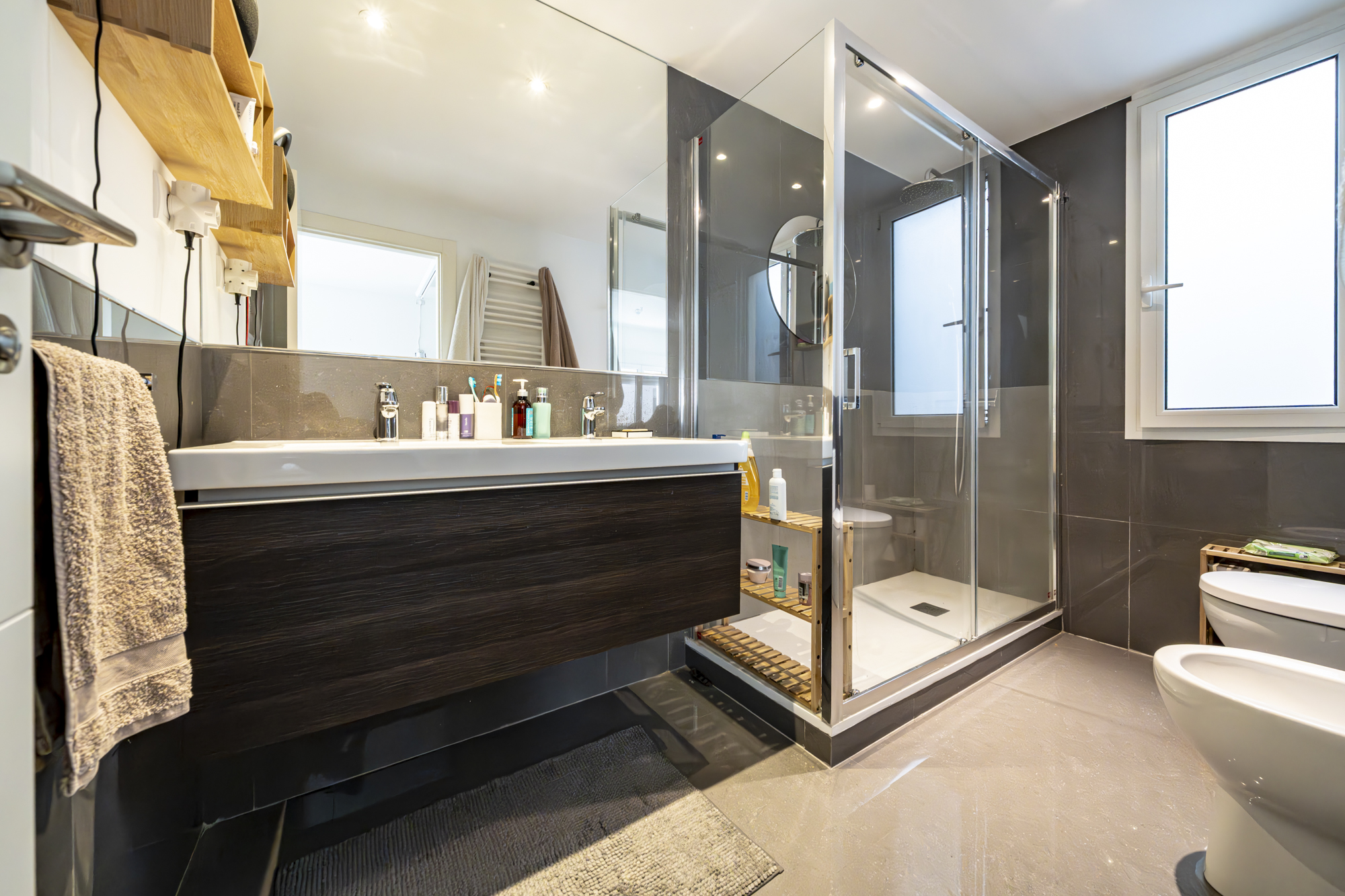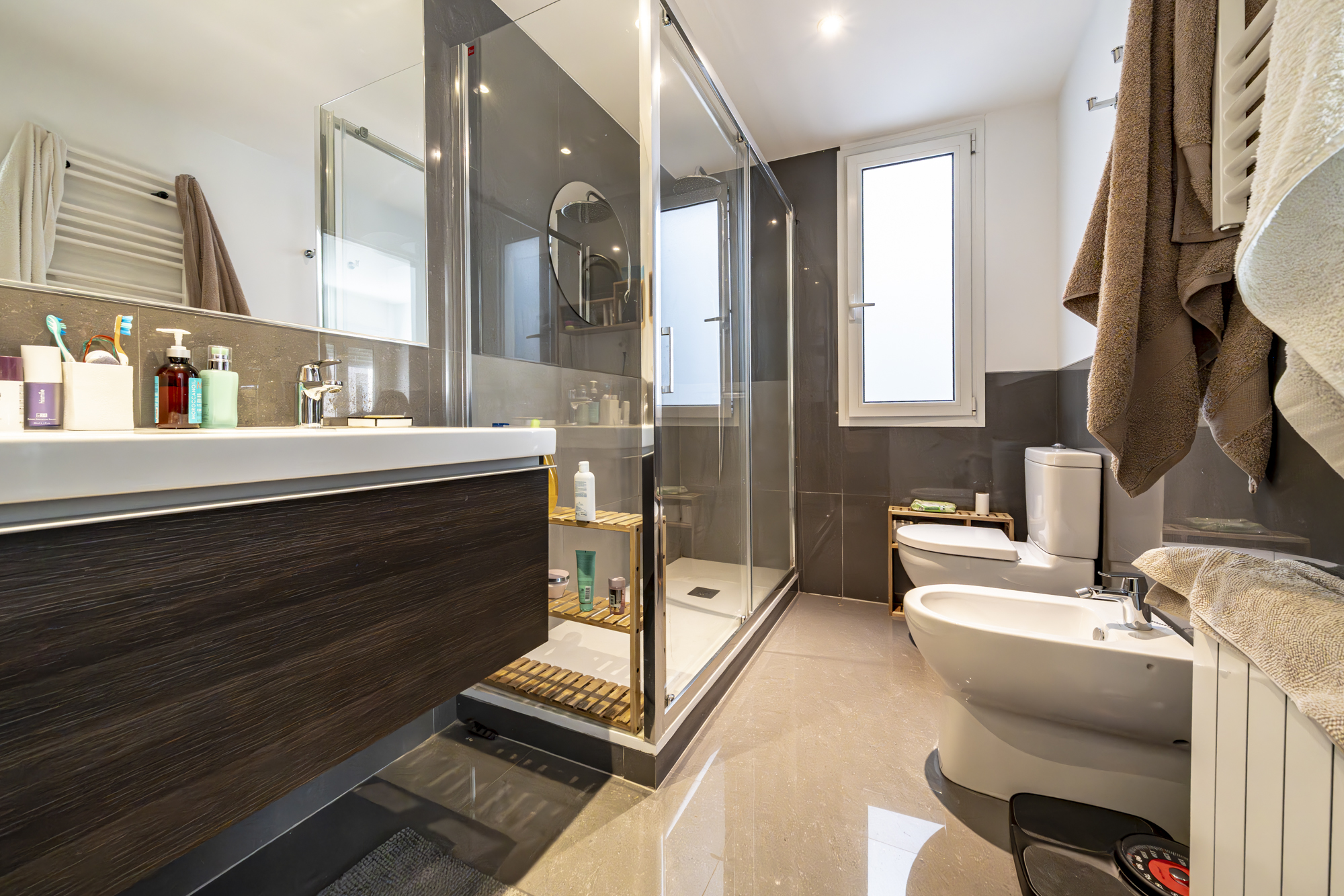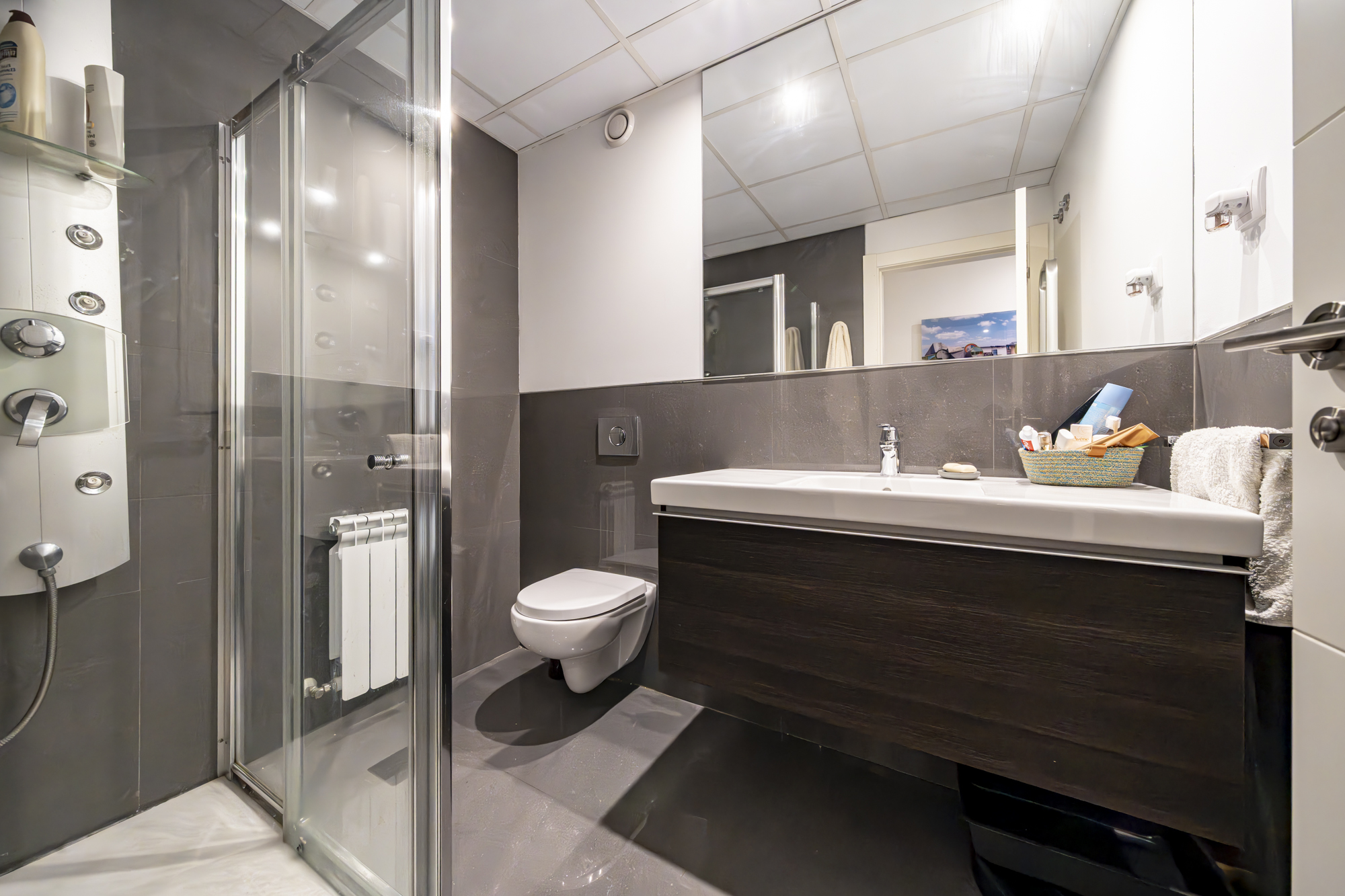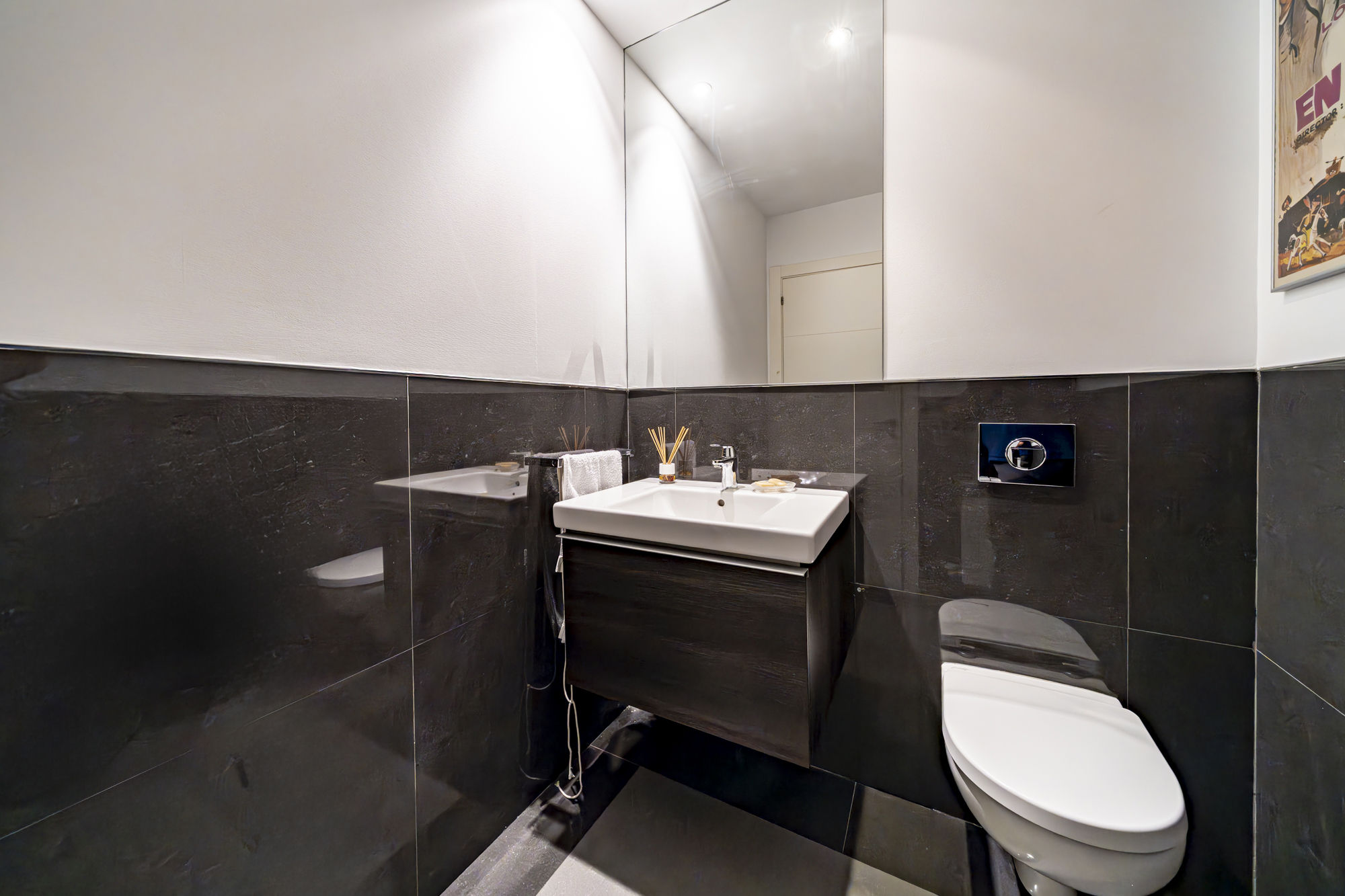 Zona de noche: aseo de invitados junto al salón, dormitorio con armarios y baño, dormitorio princiapl amplisimo con baño grande y enorme vestidor que es en realidad un tercer dormitorio.